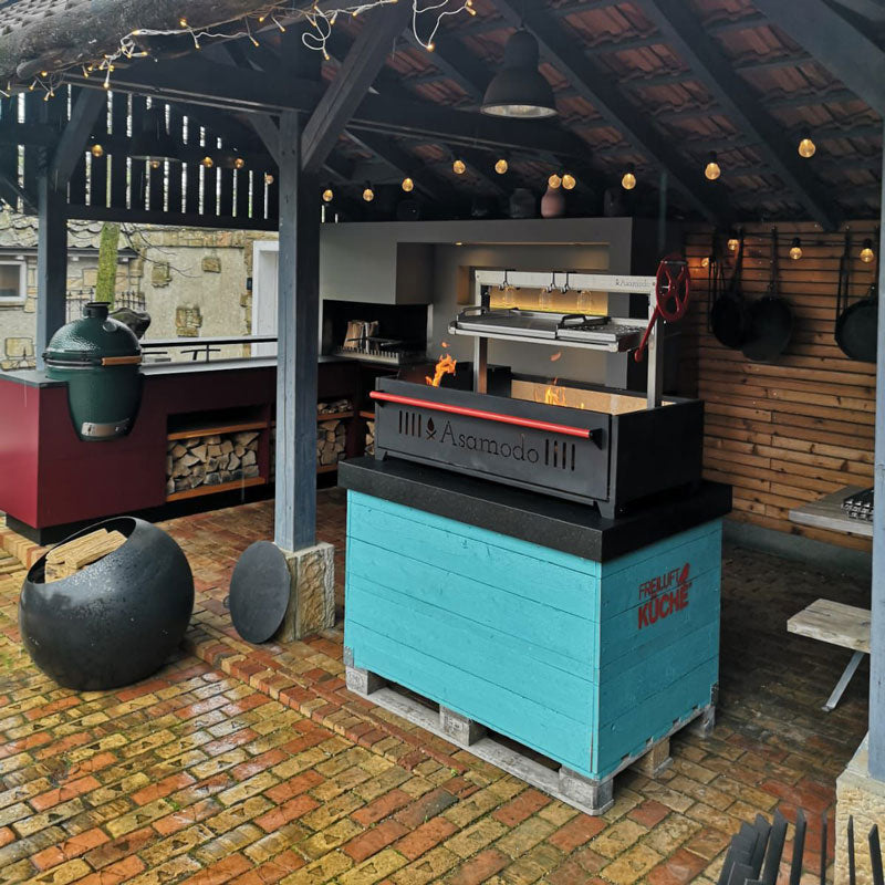 (Der Brasa)... kann durch diverse Extras in eine vielseitig einsetzbare Outdoor-Küche verwandelt werden.